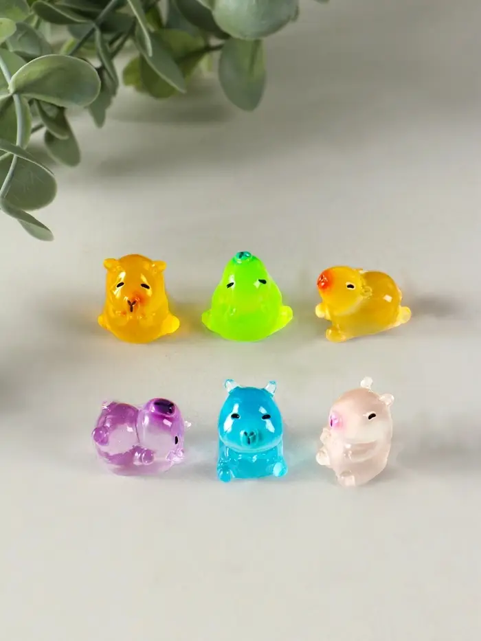 Сувенир полистоун флюоресцентный "Капибары" набор 6 шт 1,7х2 см