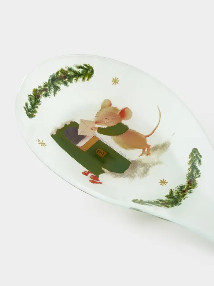 Подставка под ложку Доляна «Новогодние зверята», 26.5×10×2 см, стекло, белая