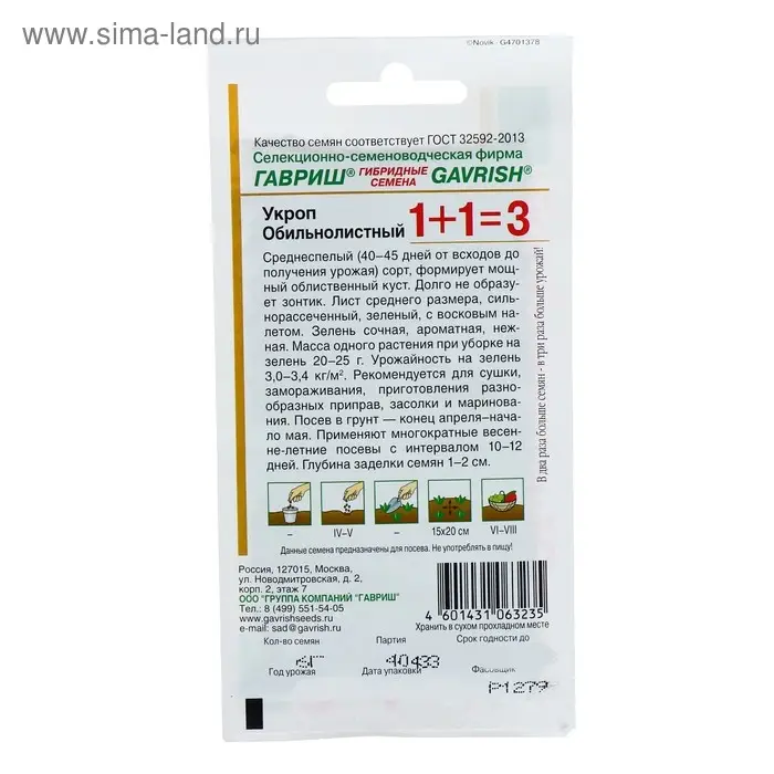 Семена Укроп 1+1 "Обильнолистный", ц/п, 6,0 г