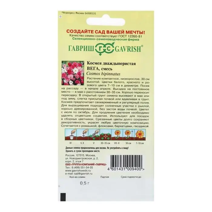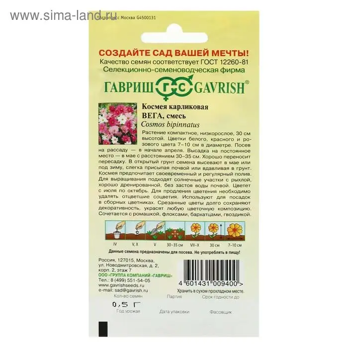 Семена цветов Космея "Вега", ц/п, бело-розовая смесь, 0,5 г