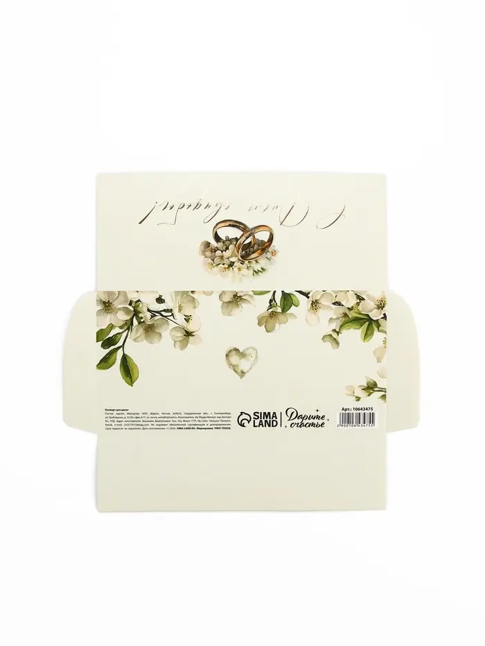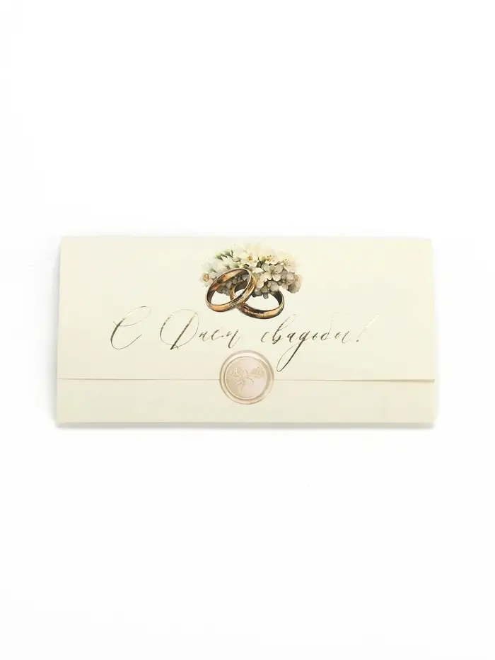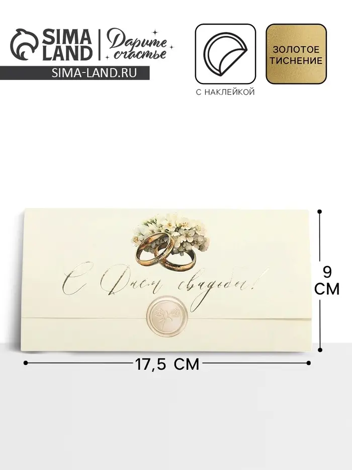 Конверт для денег с наклейкой, «С днём свадьбы», тиснение, 17.5 х 9 см