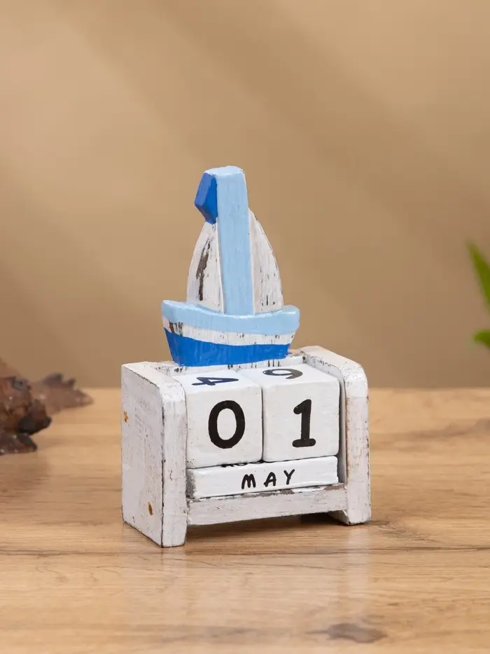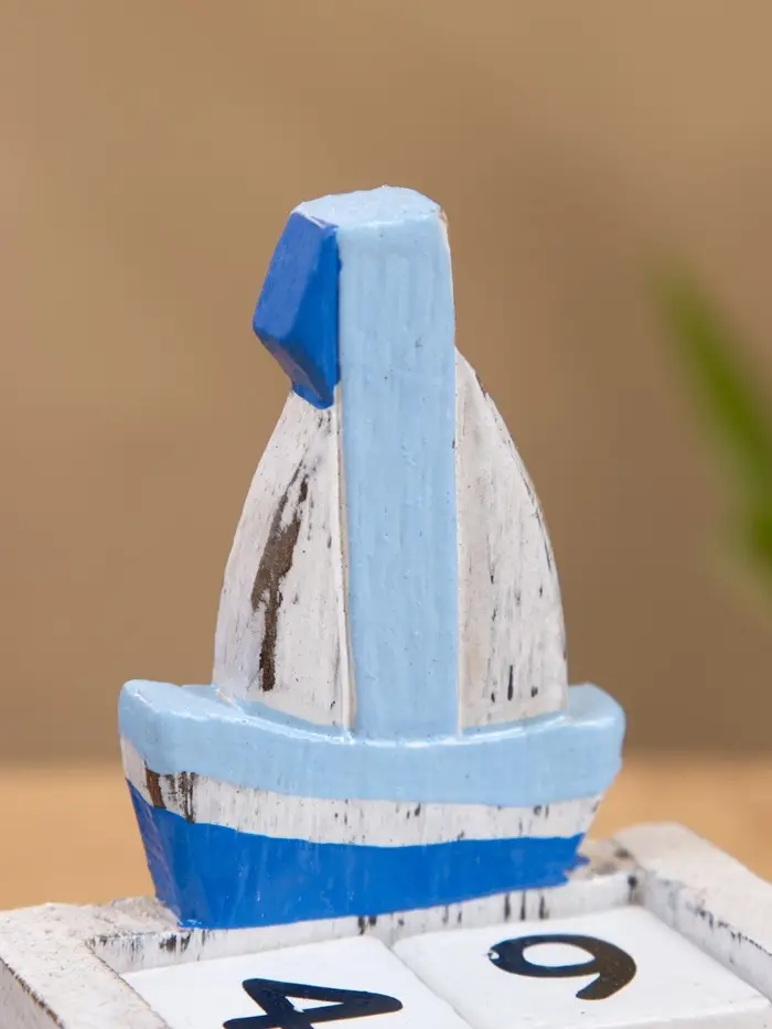 Календарь настольный "Парусник" дерево 7х4х11 см синий