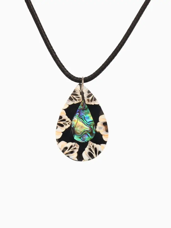 Кулон "Капля" ракушка 25,5 см, цв. чёрно-белый