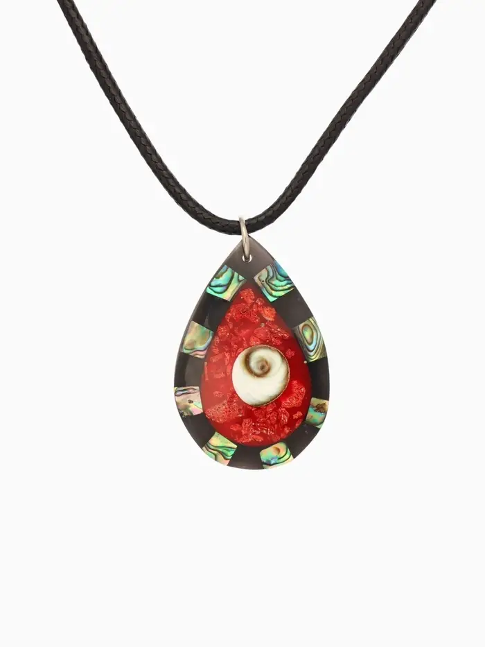 Кулон "Капля" ракушка 25,5 см, цв. чёрно-красный