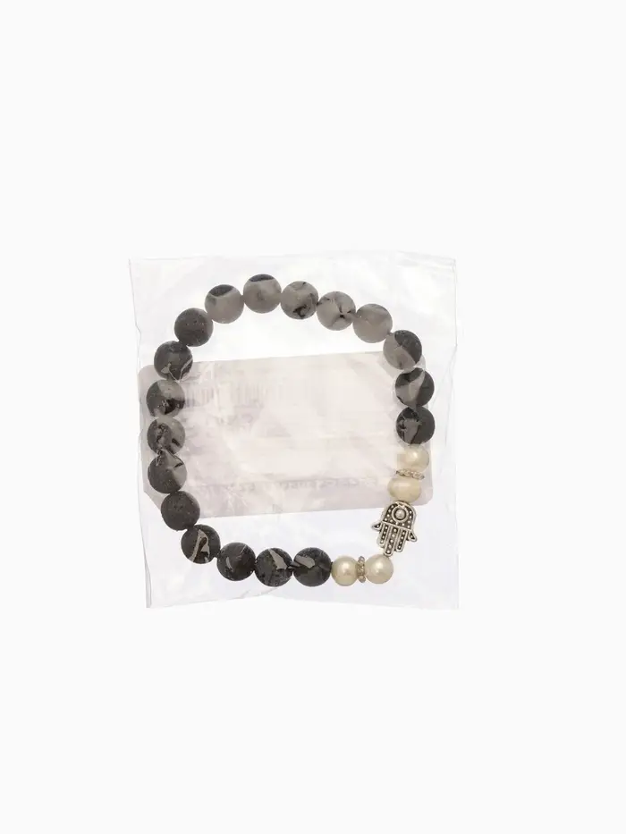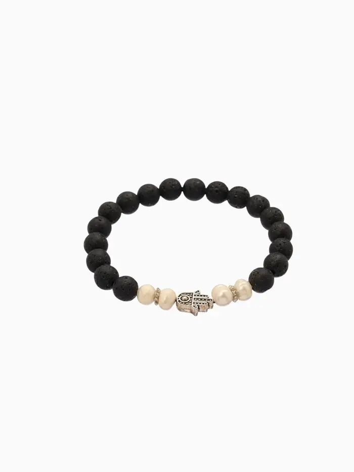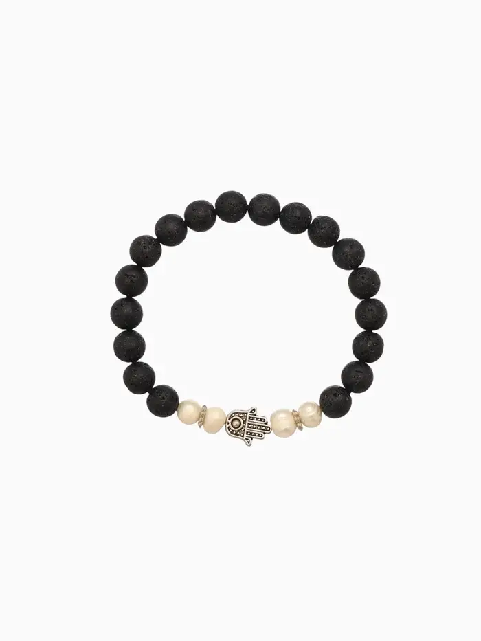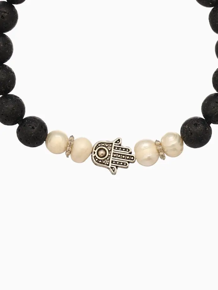Браслет "Хамса" жемчуг, лава, длина 18 см