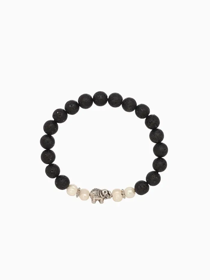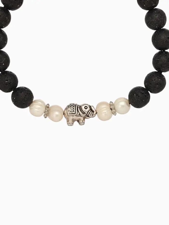 Браслет "Слоник" жемчуг, лава, длина 18 см