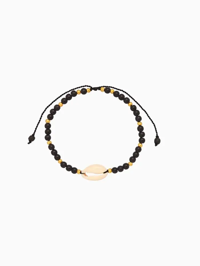 Браслет "Моана" камень пирит, длина 16 см, цв. чёрный