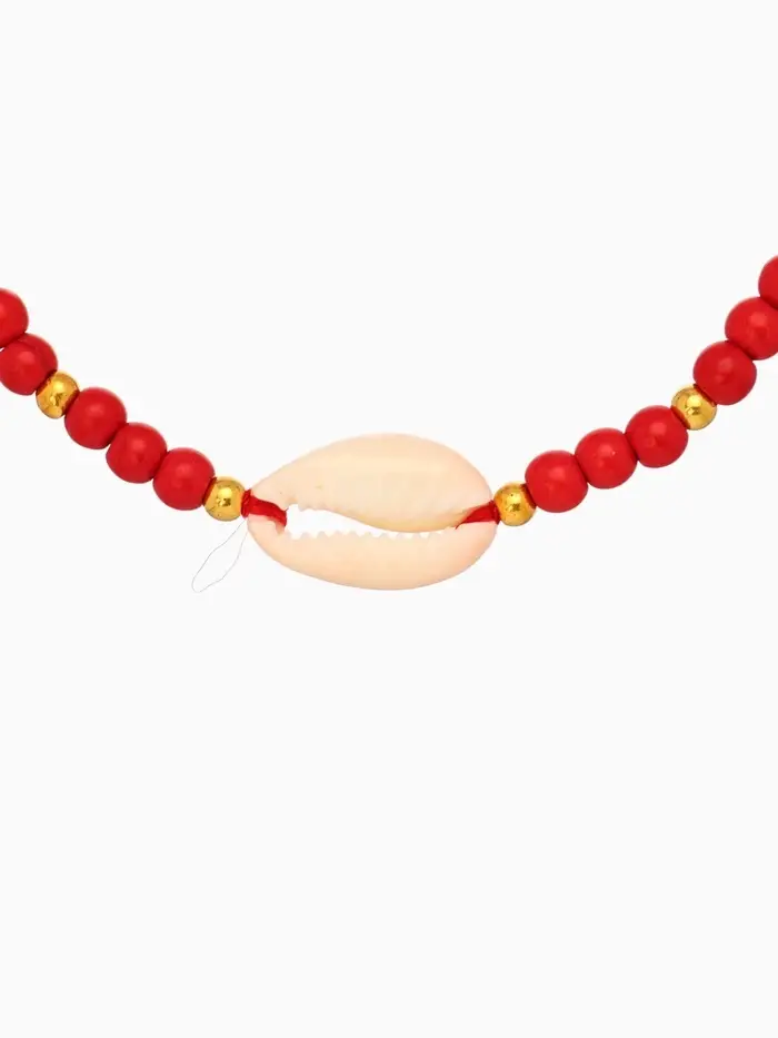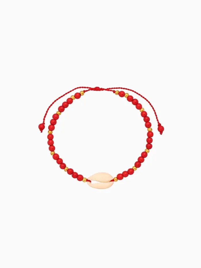 Браслет "Моана" камень пирит, длина 16 см, цв. красный