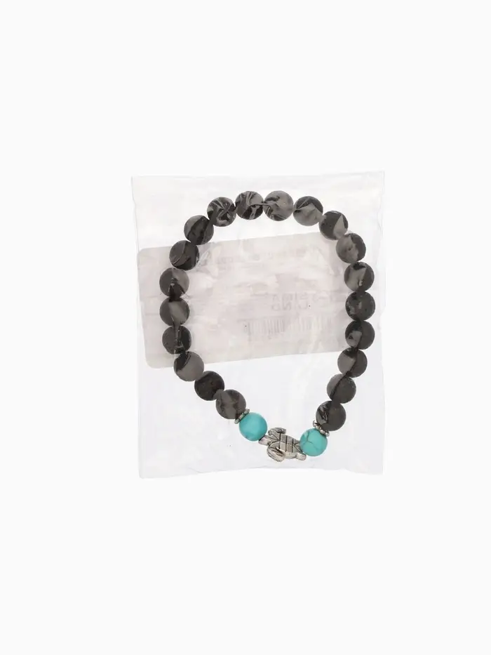Браслет "Черепашка" камень пирит, лава, длина 18 см, цв. чёрный, бирюзовый
