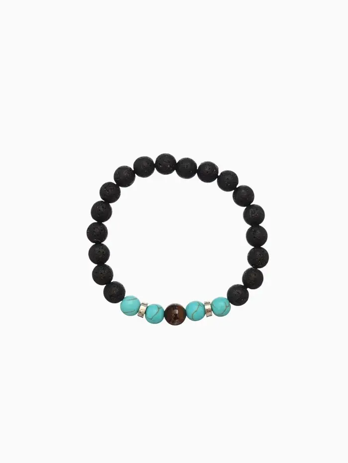 Браслет "Вулкан" камень пирит, лава, длина 18 см, цв. чёрный, бирюзовый