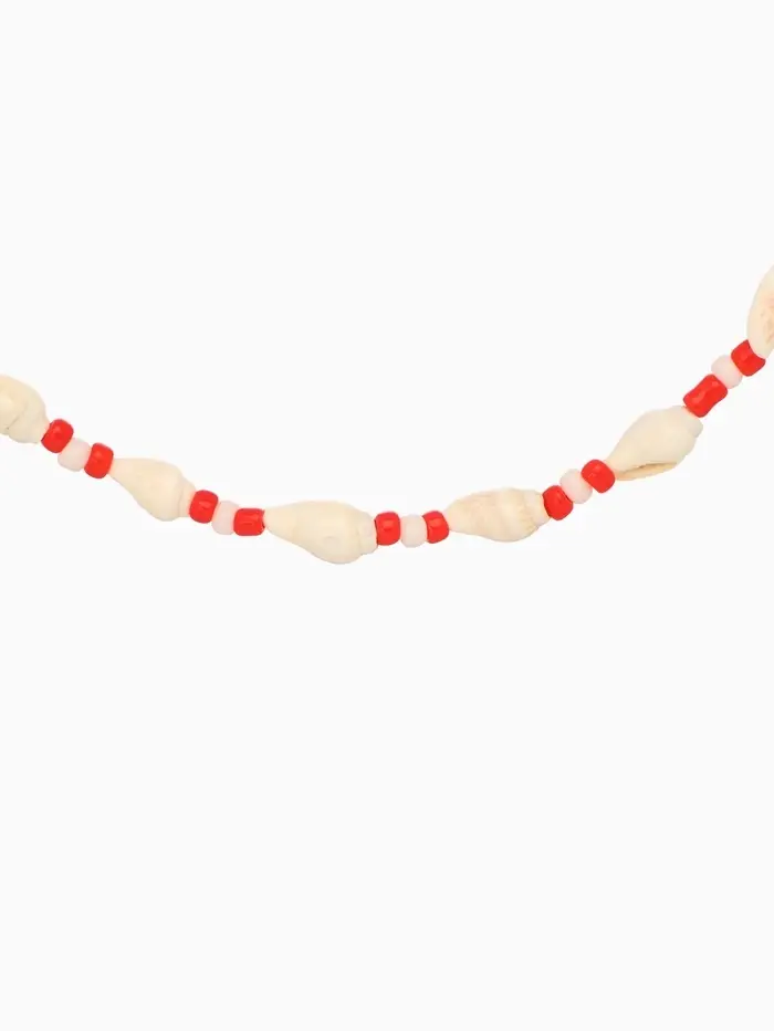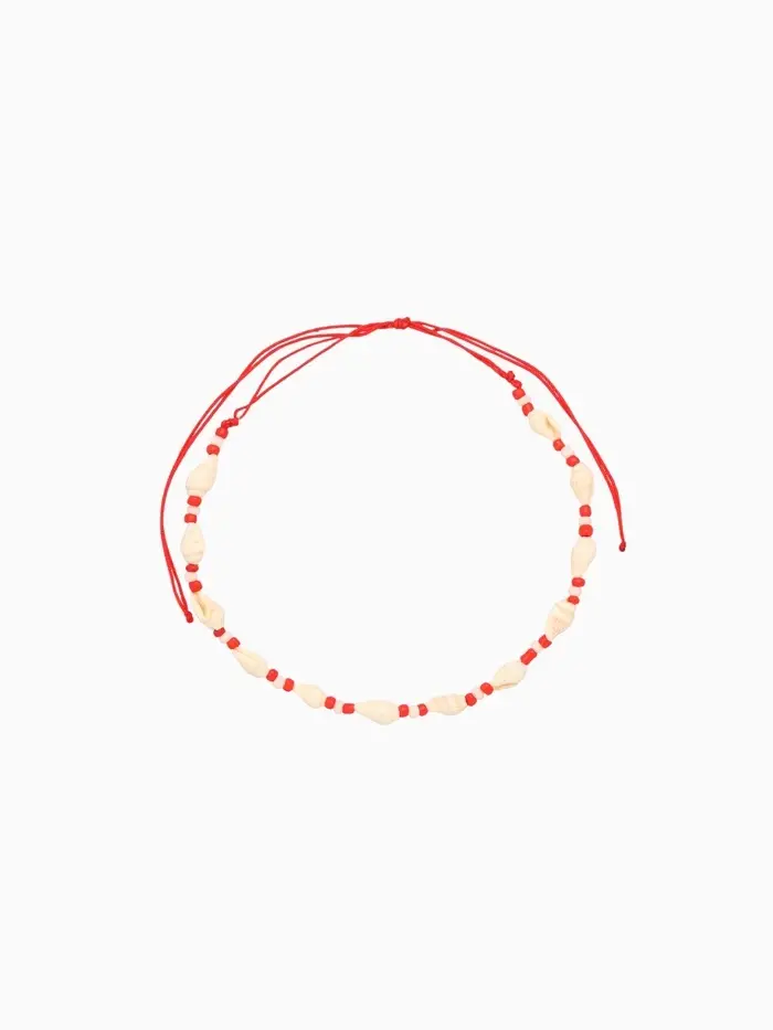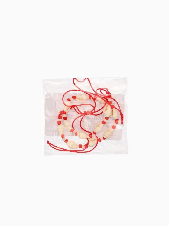 Браслет на ногу (анклет), длина 18 см, цв. белый, красный