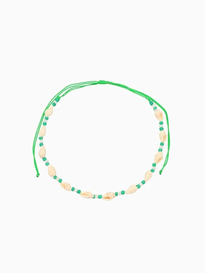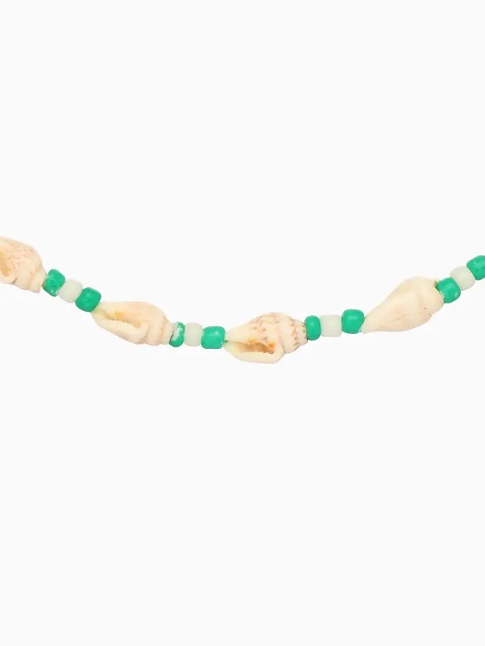 Браслет на ногу, анклет, длина 20 см, белый, зелёный