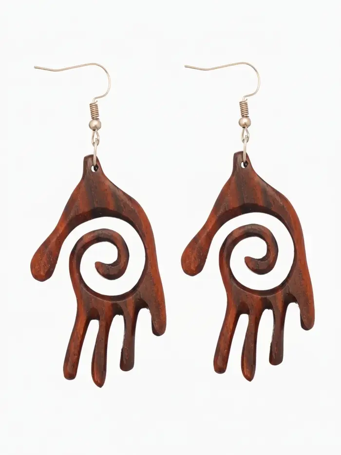 Серьги " Ладонь со спиралью" дерево соно