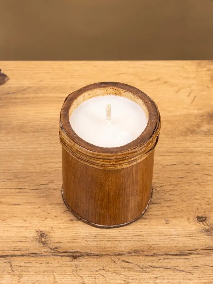 Свеча ароматизированная в бамбуке "Роза" 8х8х9 см, 200 мл, цв. бежевый