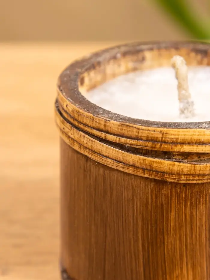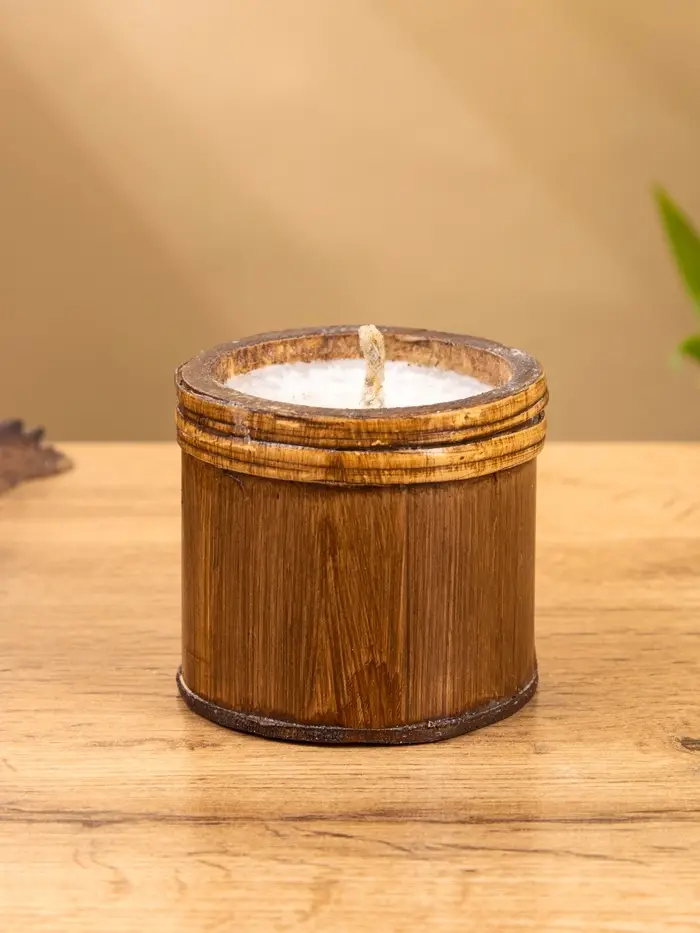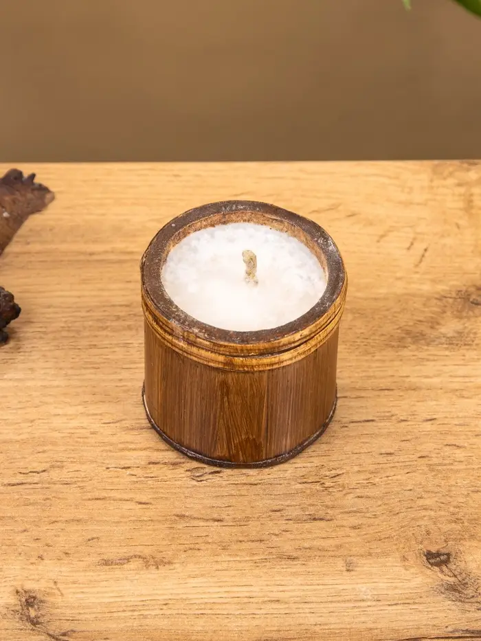 Свеча в бамбуке, 7х7х6 см, 100 мл, цв. бежевый