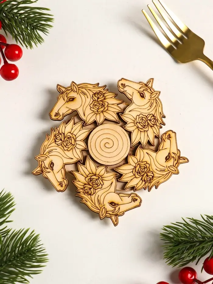 Подставка под горячее Лошадь в цветах, 11см, можжевельник