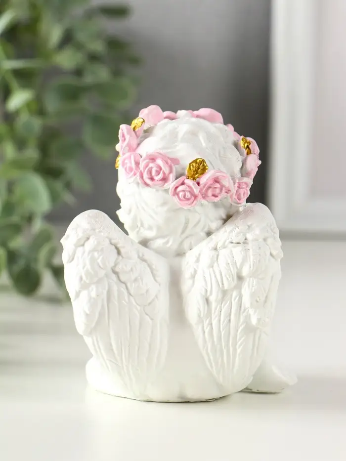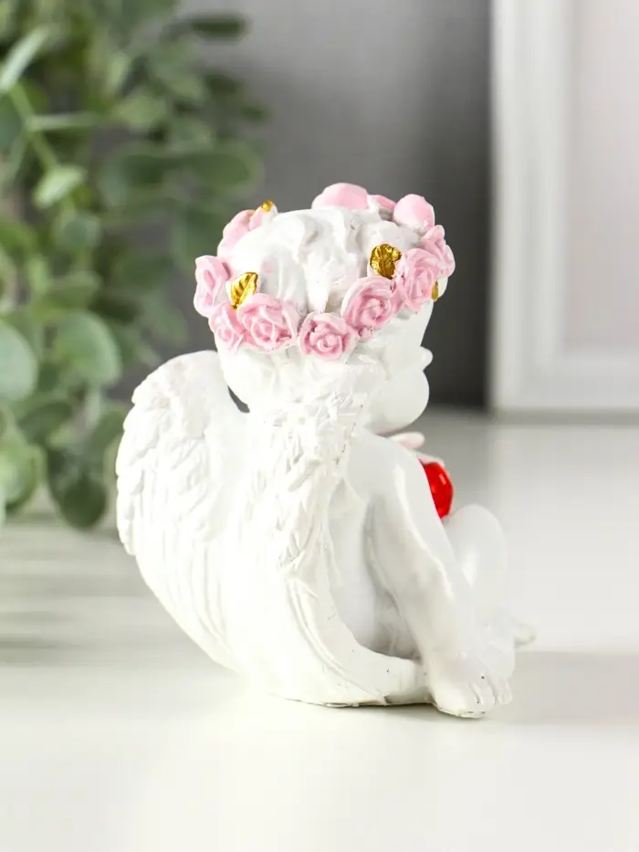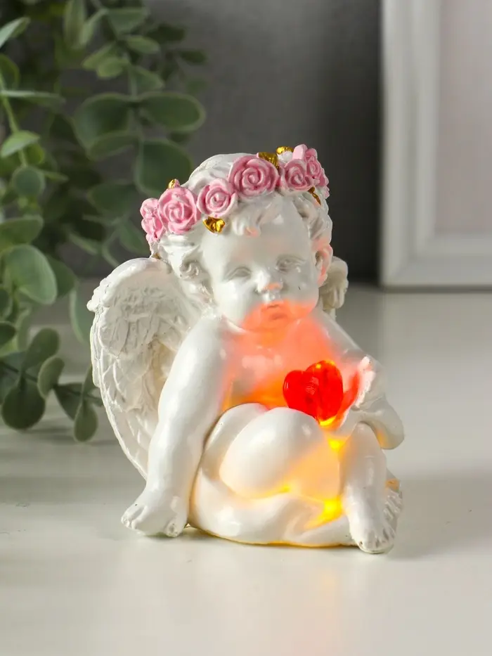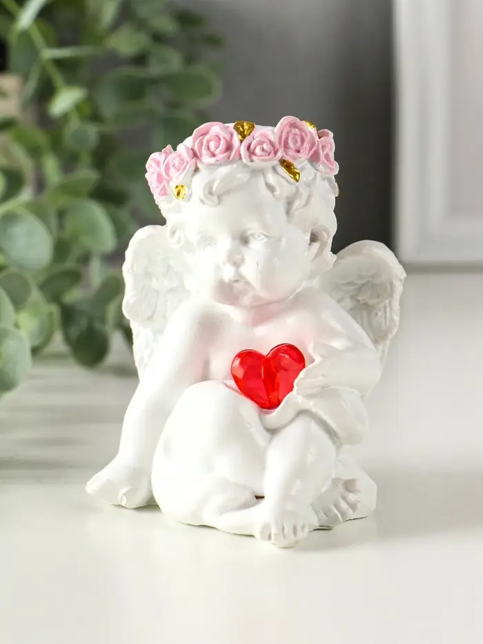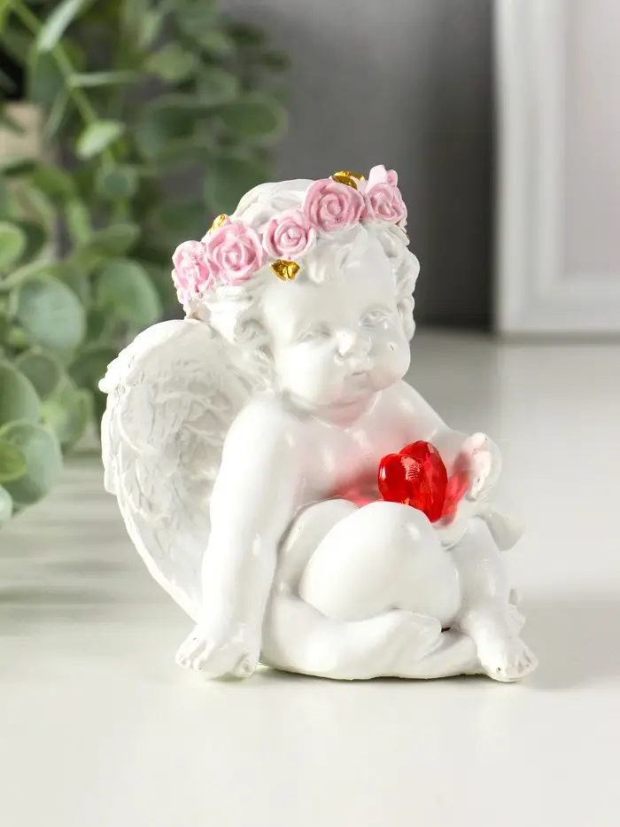 Сувенир полистоун свет "Ангел - воздушный поцелуй в форме сердца" белый 6,8х6х7,3 см