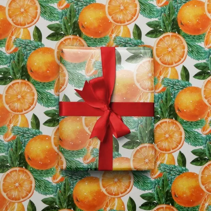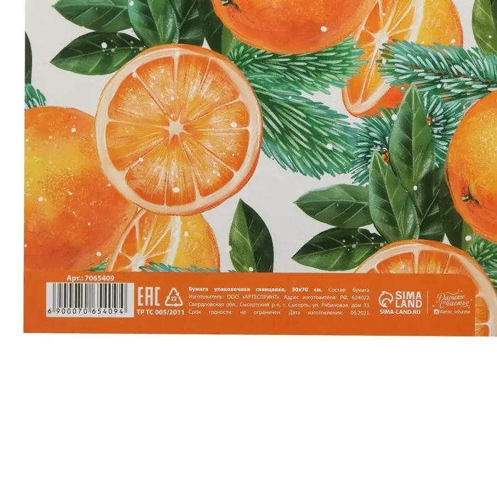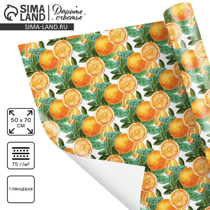 Упаковочная бумага на новый год «Яркие мандарины», 50 х 70 см, глянцевая