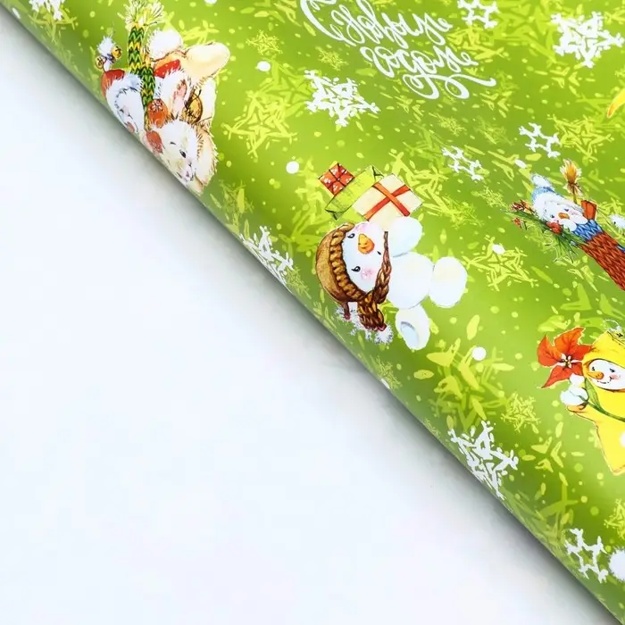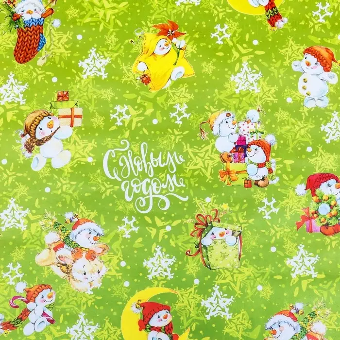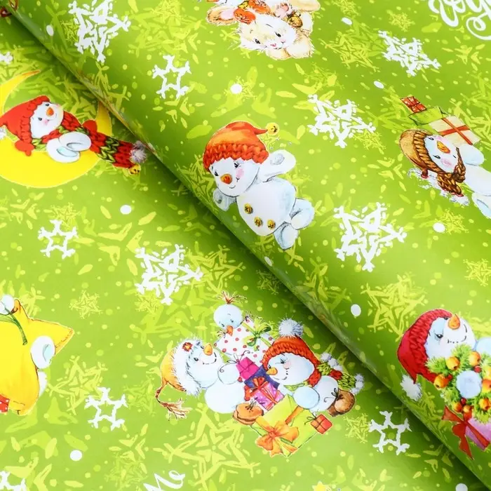 Бумага упаковочная новогодняя глянцевая «Снеговики», 70×100 см