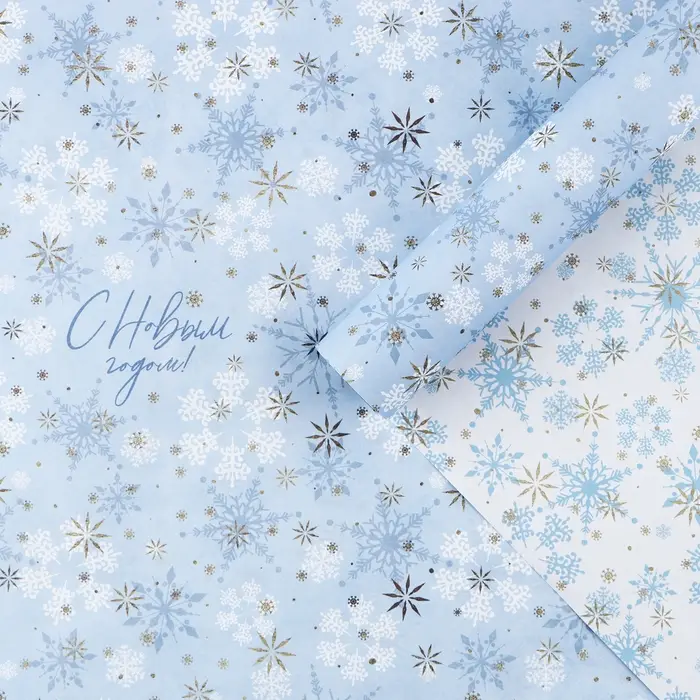 Упаковочная бумага на новый год, двухсторонняя крафтовая «С Новым годом!», 70 х 100 см