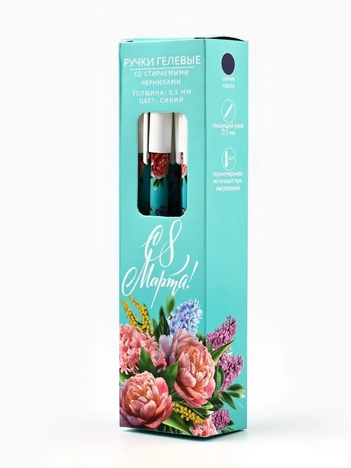 Ручка пиши-стирай, синяя паста, гелевая 0.5 мм с колпачком «С 8 Марта!»
