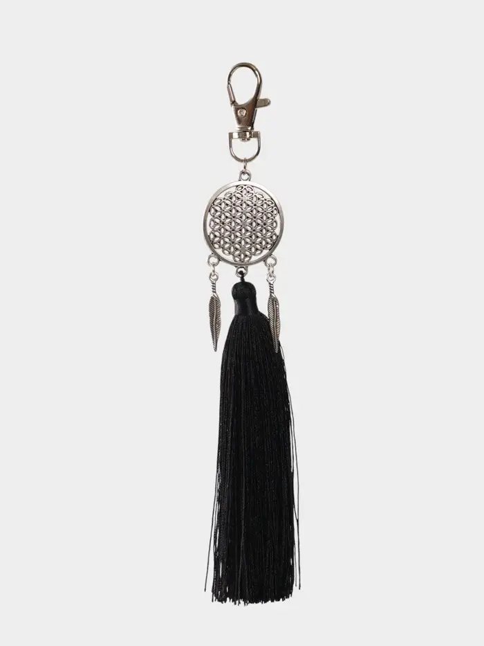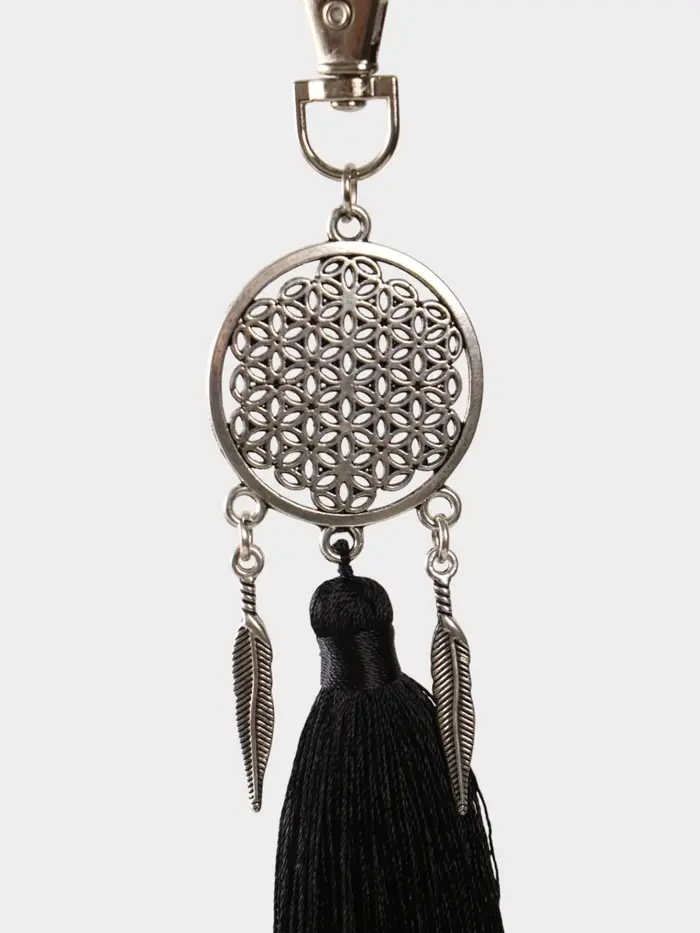 Брелок-кисточка "Ловец снов" 17 см, цв. чёрный, серебристый