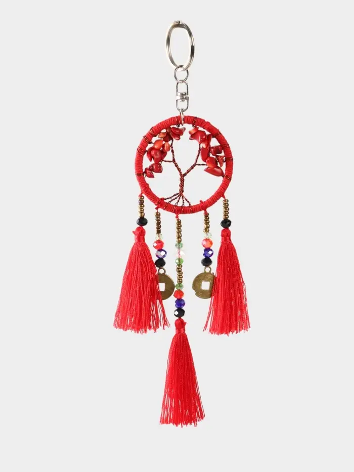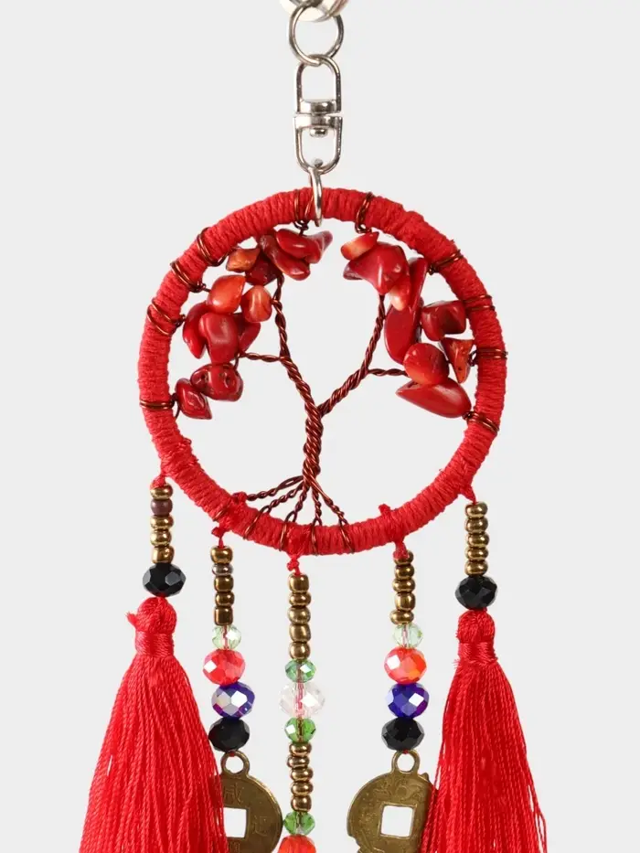 Брелок ловец снов "Древо" 19 см, цв. красный