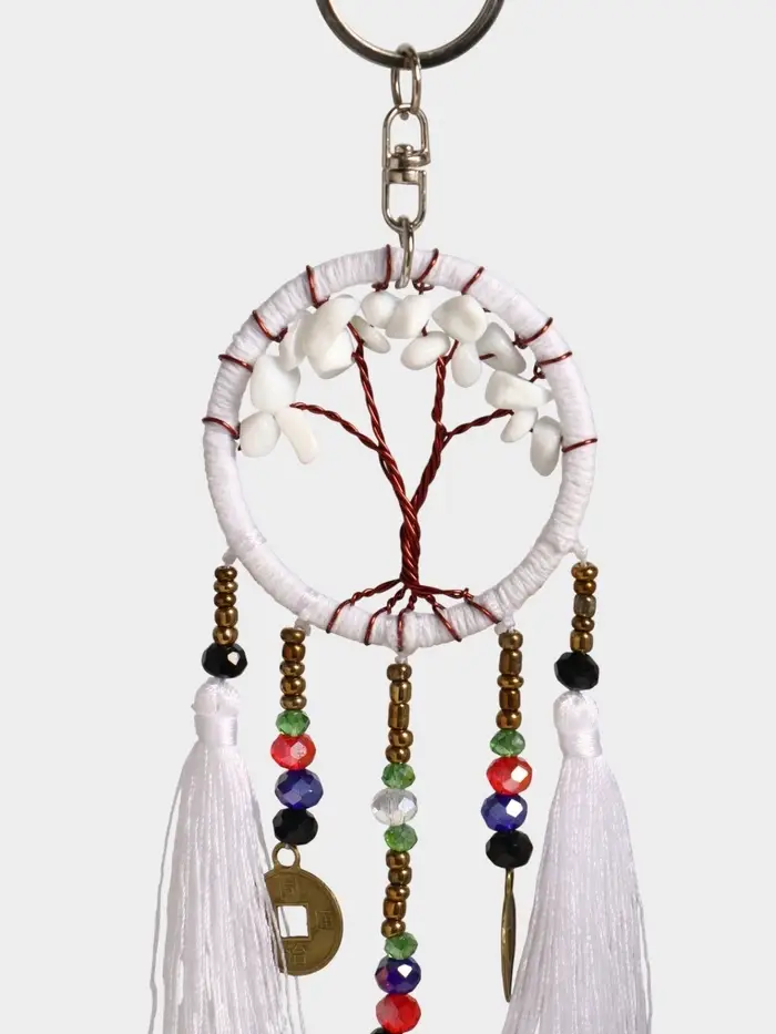 Брелок ловец снов "Древо" 19 см, цв. белый