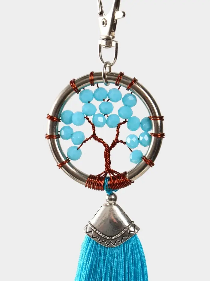 Брелок ловец снов "Древо жизни" 19 см, цв. голубой