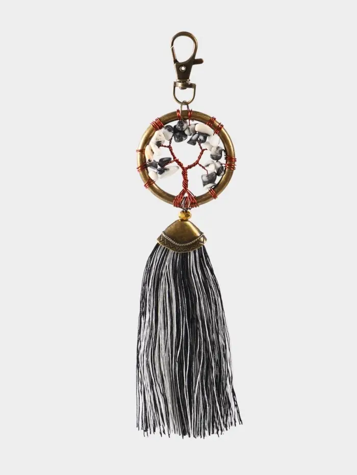 Брелок ловец снов "Великое древо" 19 см, цв. чёрно-белый