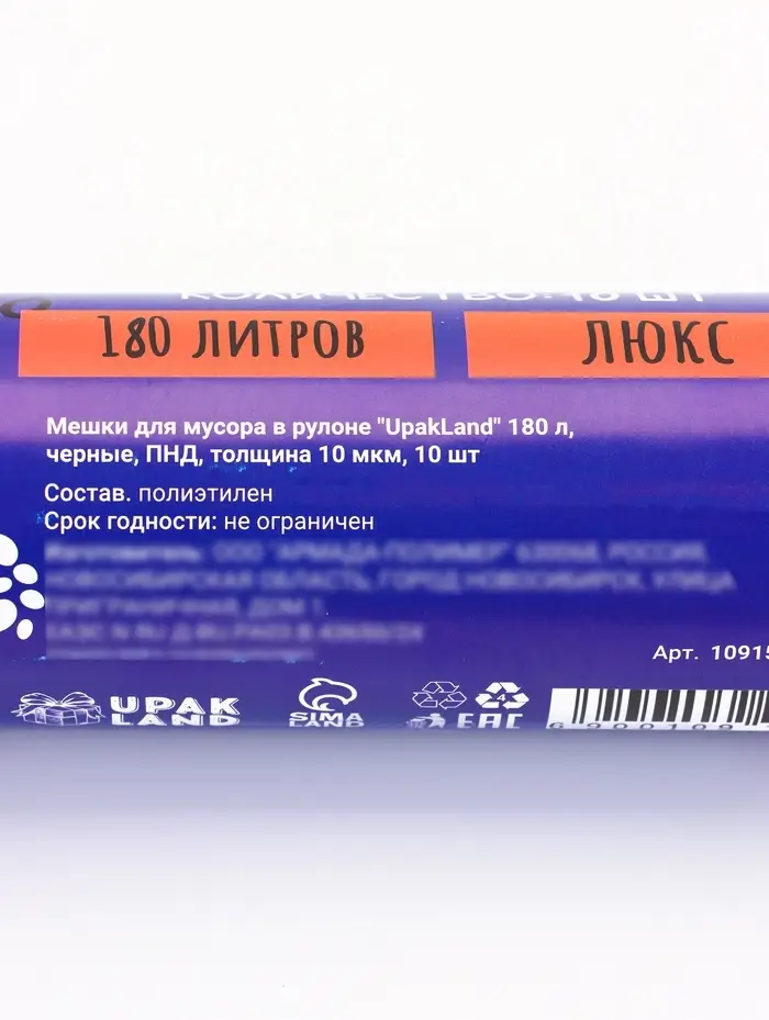 Мешки для мусора 180 л, ПНД, 10 мкм, 10 шт в рул, цвет черный