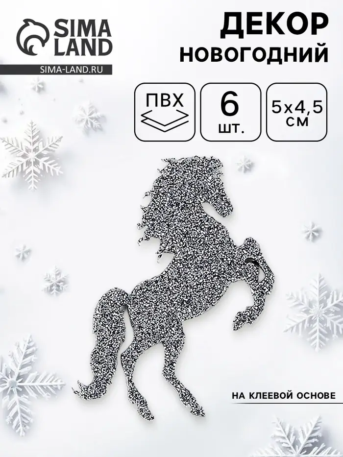 Декор "Лошадки" на клеевой основе, цвет графит, набор 6 шт.
