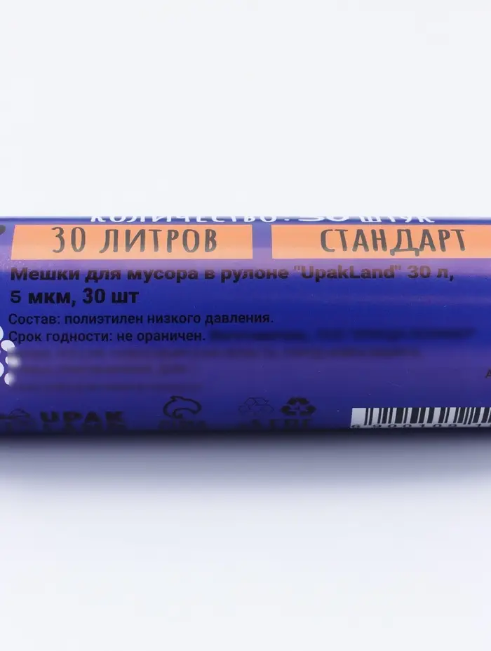 Мешки для мусора 30 л, ПНД, 5 мкм, 30 шт в рул, цвет синий