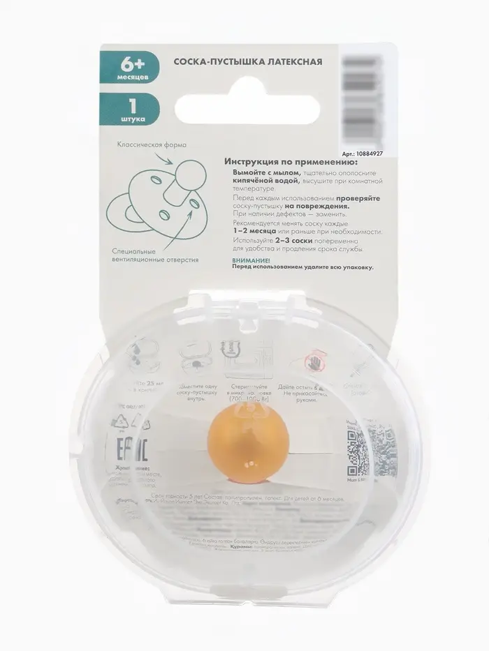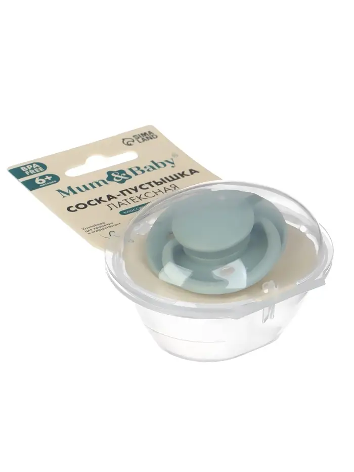 Соска - пустышка классическая, латекс, цв.серо-зелёный, в контейнере, от 6 мес., M&B