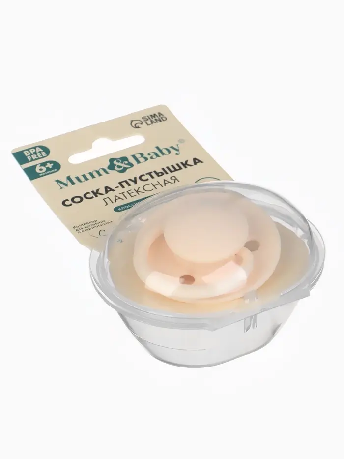 Соска - пустышка классическая, латекс, цв.айвори, в контейнере, от 6 мес., M&B