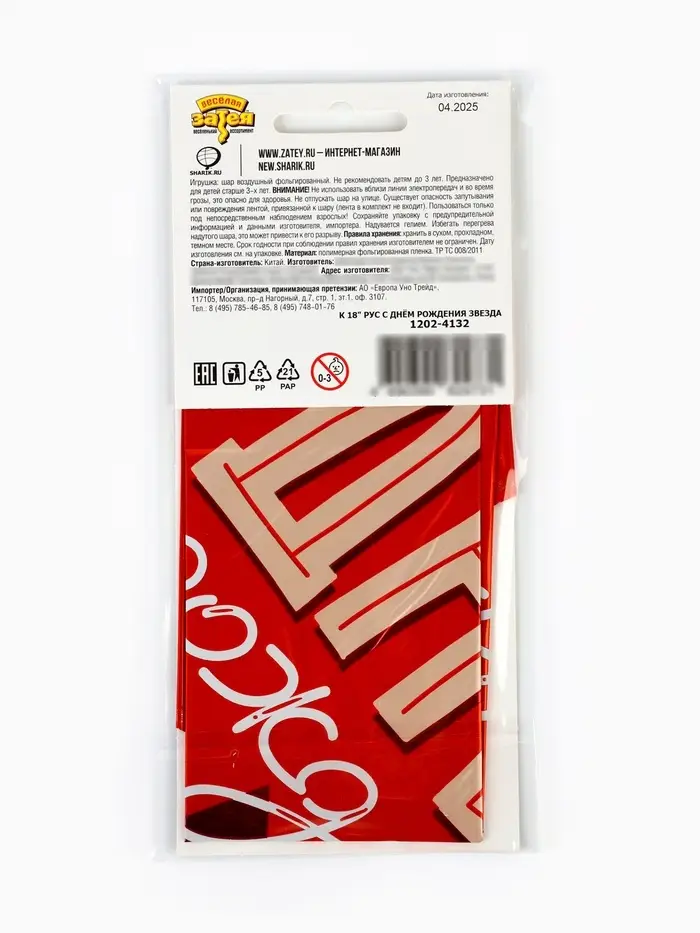 Воздушный шар фольгированный 18" звезда "С днем рождения" цвет красный, инд.уп.