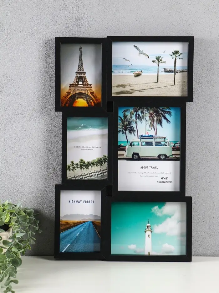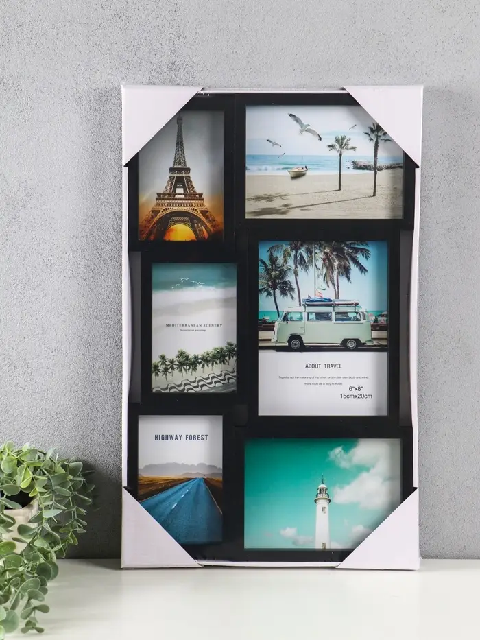 Фоторамка МДФ, стекло на 6 фото 10х15, 13х18, 15х20 см "Воспоминания" чёрная 51х31,5х2,2 см 109067