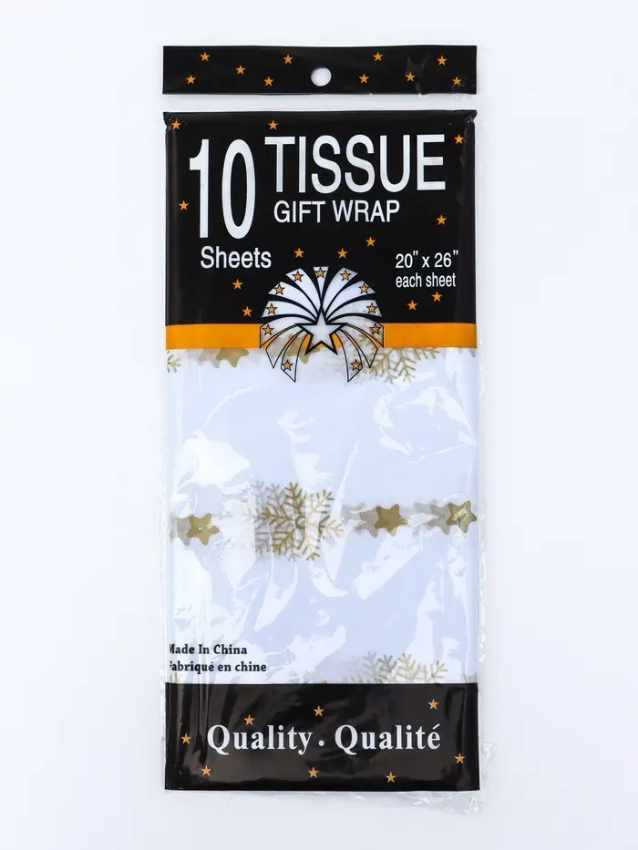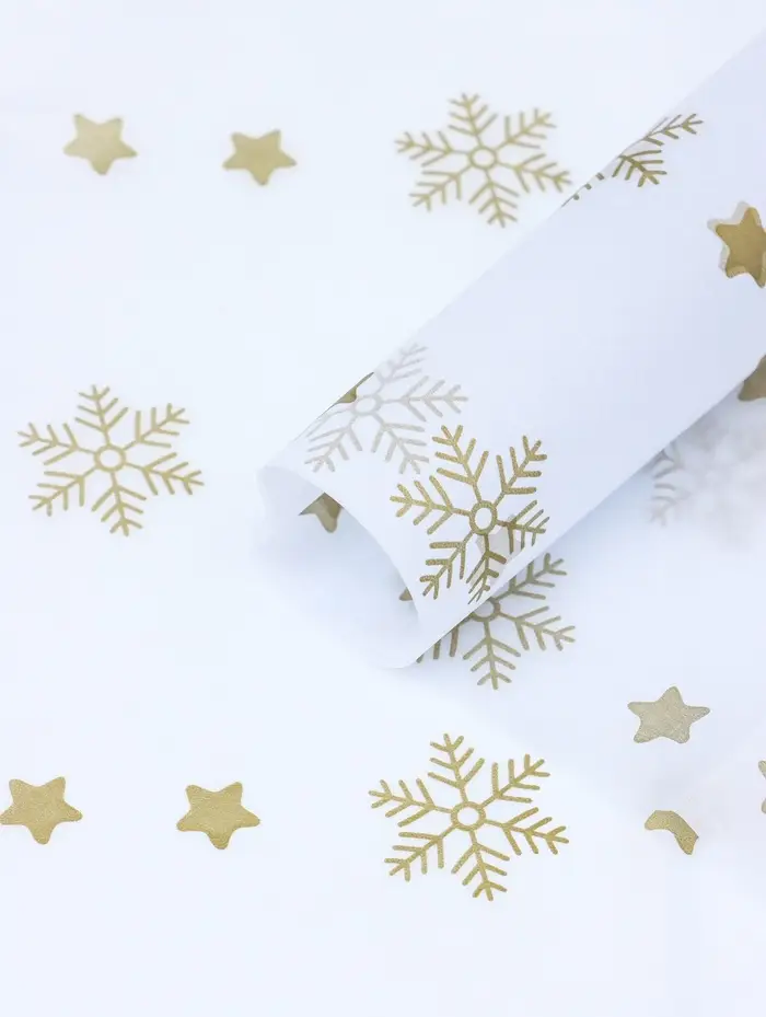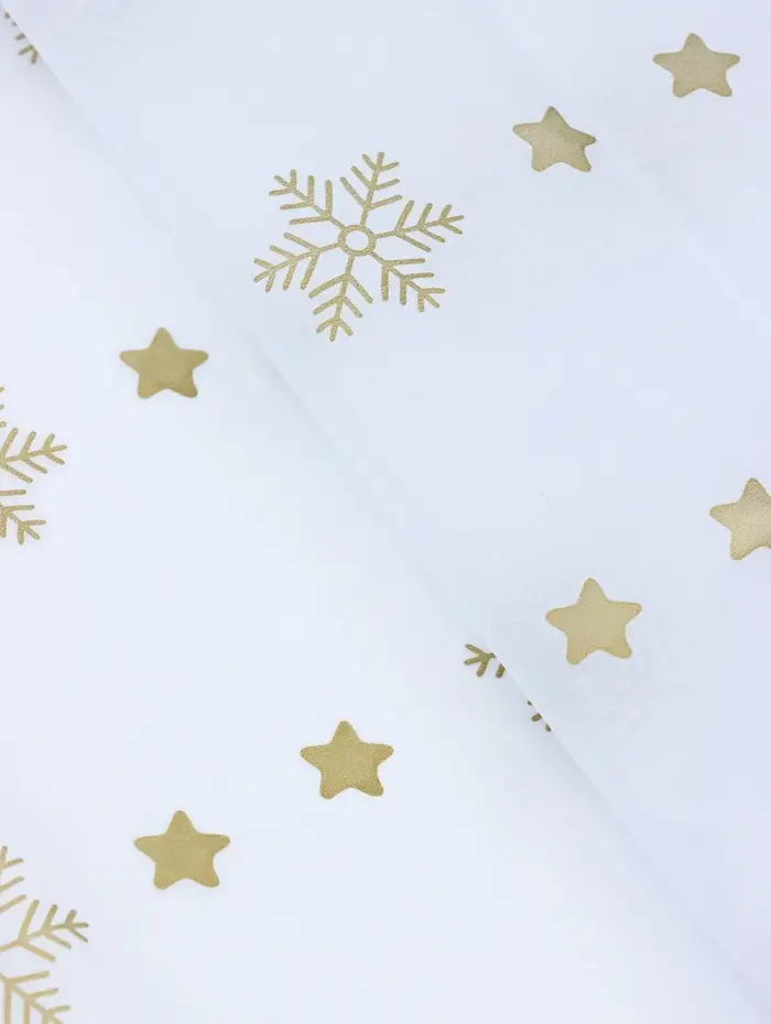 Бумага упаковочная тишью "Снежинки со звездами", золотистый, 50 х 66 см