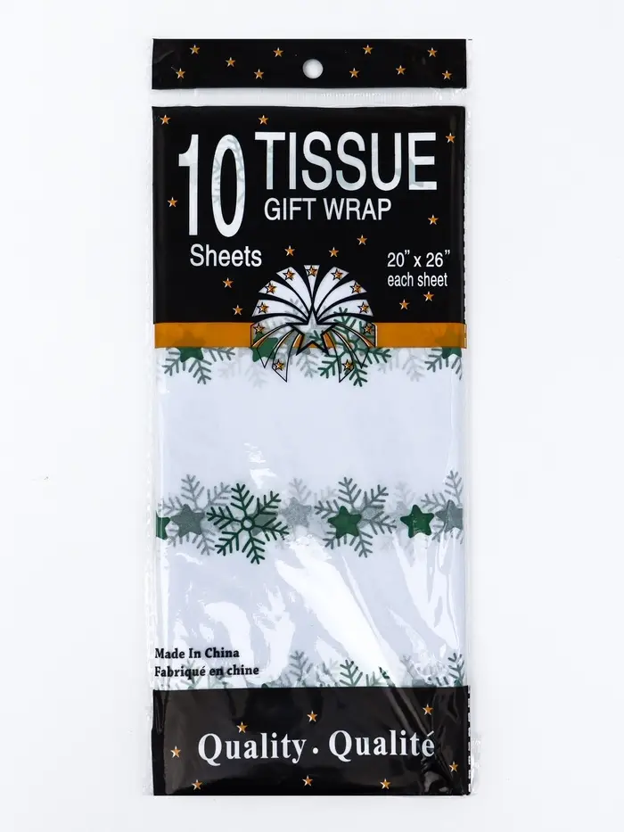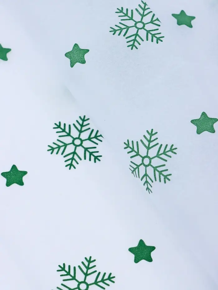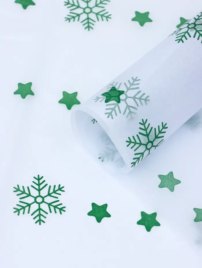 Бумага упаковочная тишью "Снежинки со звездами", зелёный, 50 х 66 см