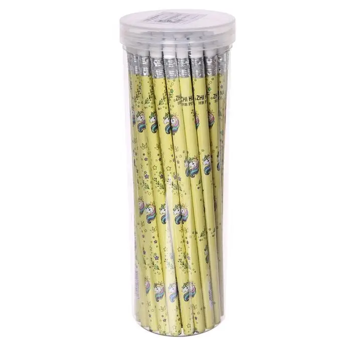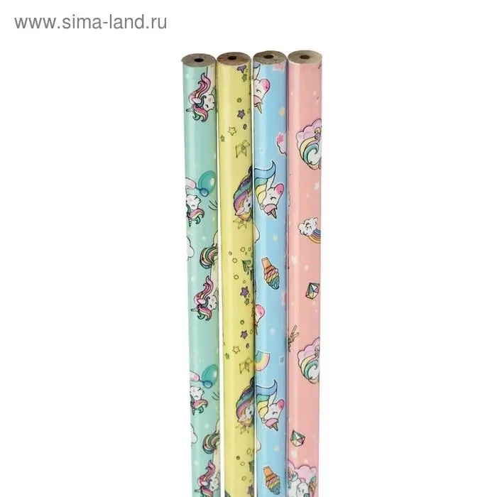 Карандаш чернографитный с ластиком «Единороги», твердость НВ, корпус круглый, МИКС (штрихкод на штуке)