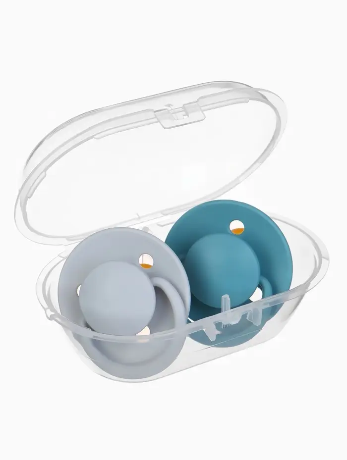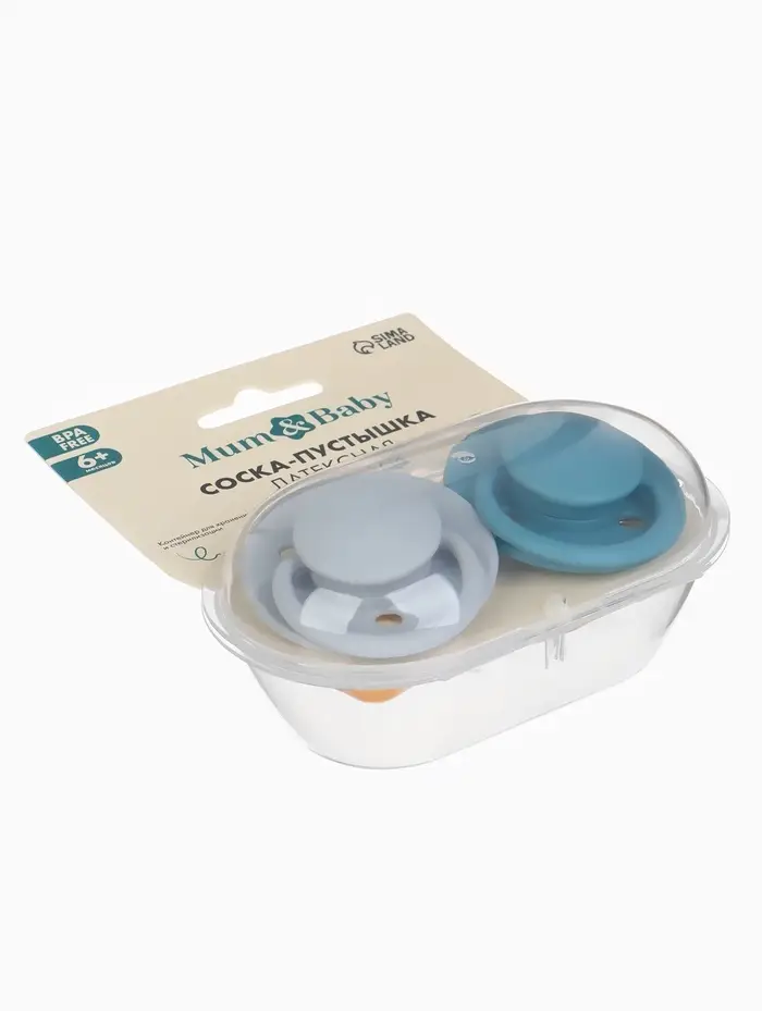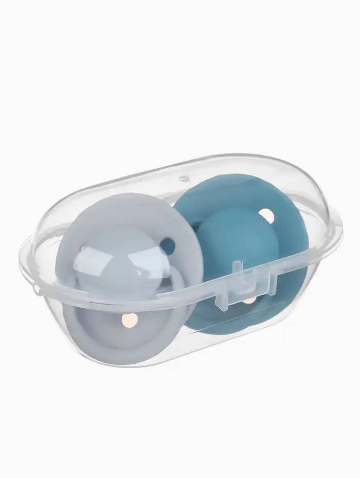 Набор классических пустышек, 2 шт., латекс, серый/серо-синий, в контейнере, от 6 мес., M&B