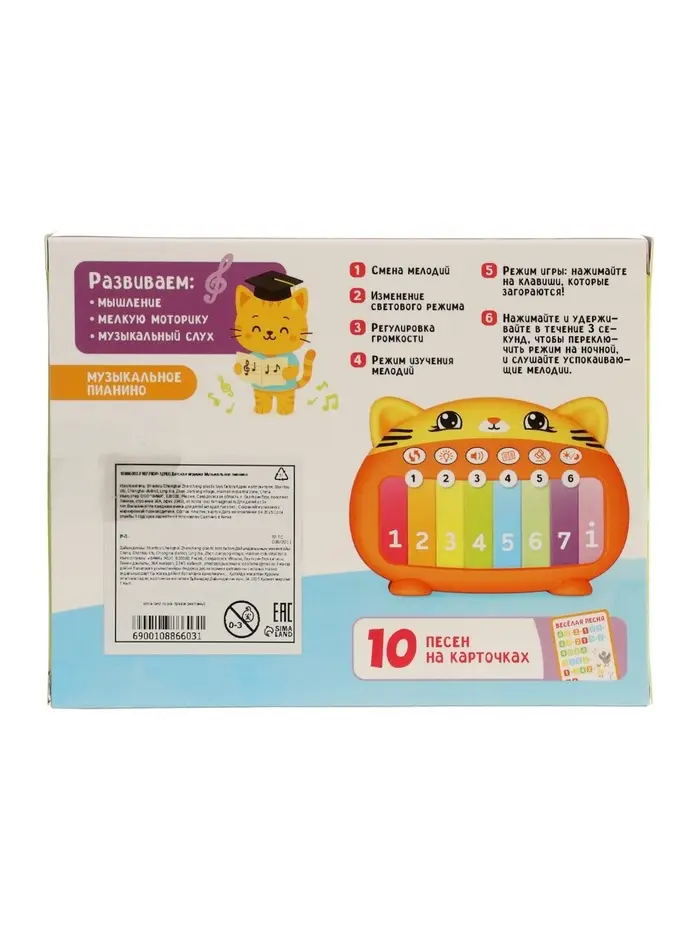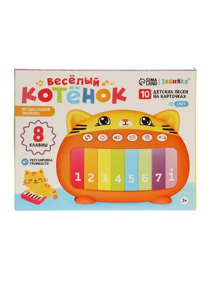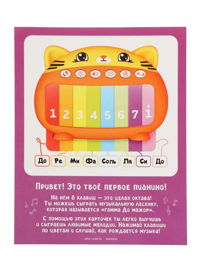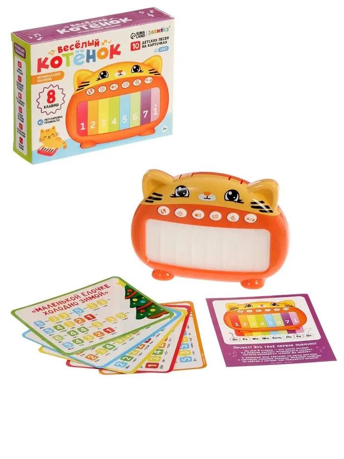 ZABIAKA Музыкальное пианино "Котенок", звук, свет, карточки с песенками