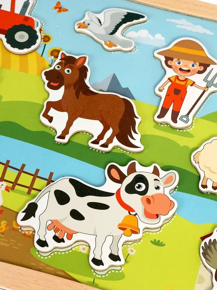 Пазлы для малышей "Ферма" цветные липучки