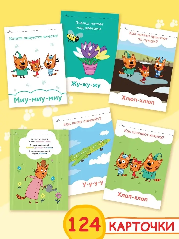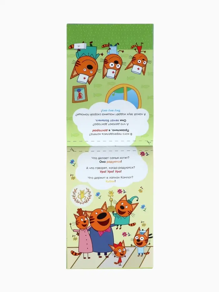 Набор книг «Запуск речи» Три кота — это увлекательный инструмент для развития речи малышей от 1 года. Четыре книжки по 36 страниц каждая, созданные по мотивам популярного мультсериала, помогут ребёнку легко и весело освоить новые слова и выражения.