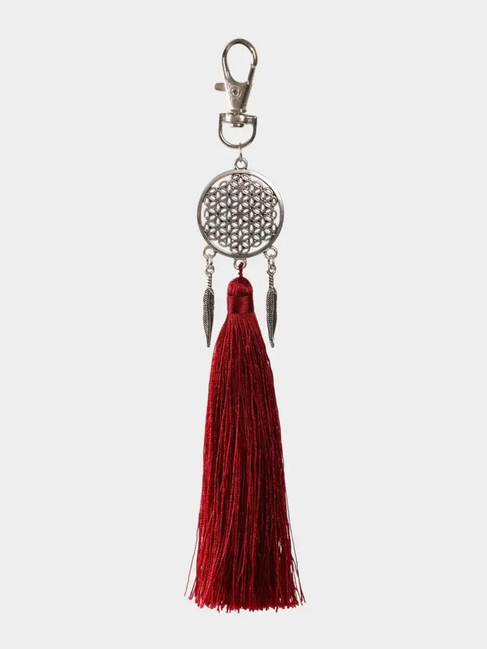 Брелок-кисточка "Ловец снов" 17 см, цв. бордовый, серебристый