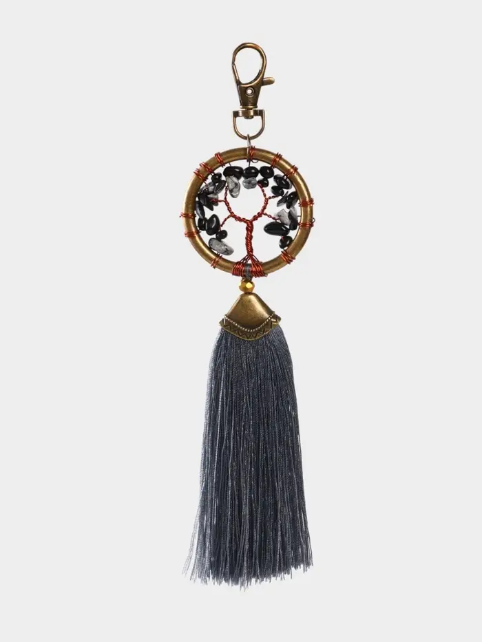 Брелок ловец снов "Великое древо" 19 см, цв. серый