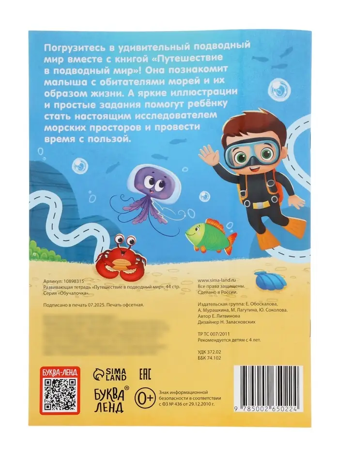 Рабочая тетрадь «Путешествие в подводный мир», 44 стр., 4+