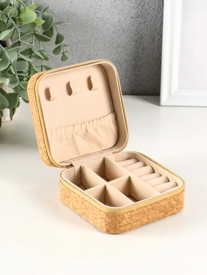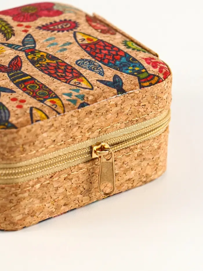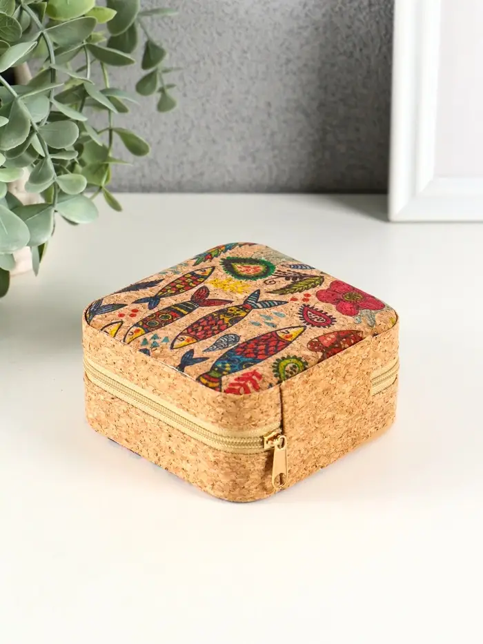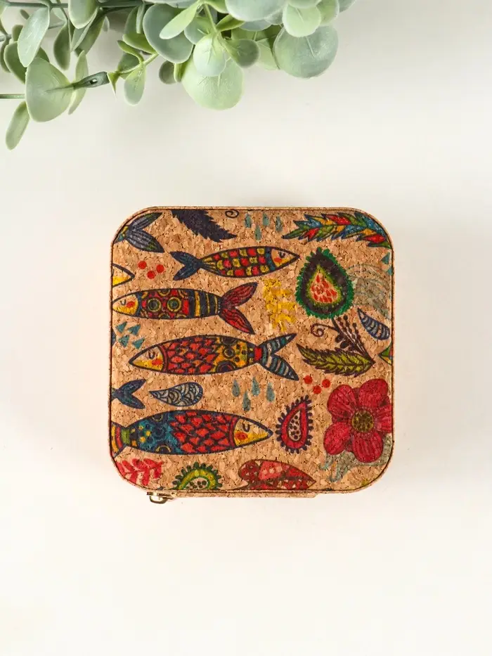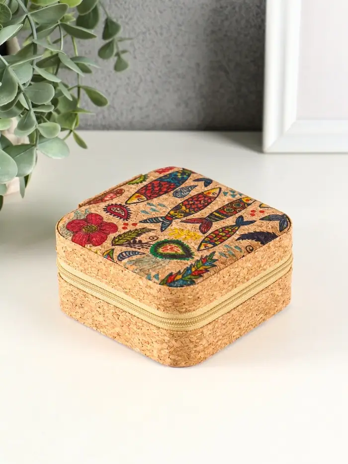 Шкатулка кожзам для украшений "Рыбки" пробка 10х10х5 см
