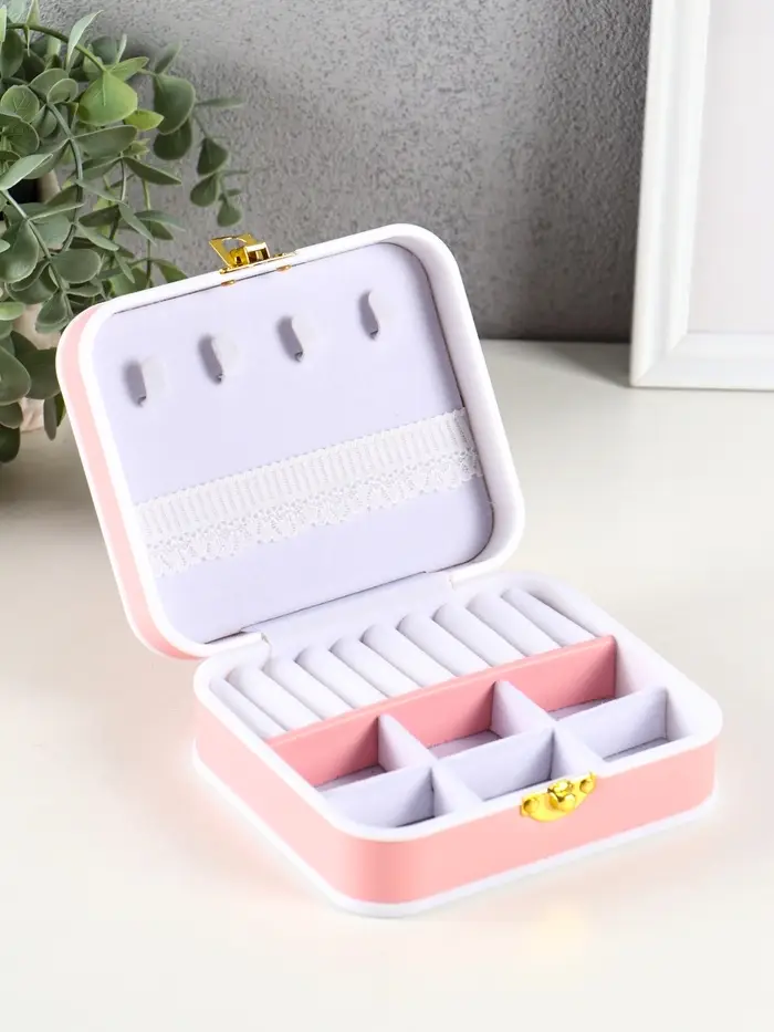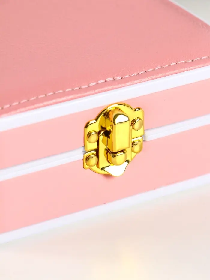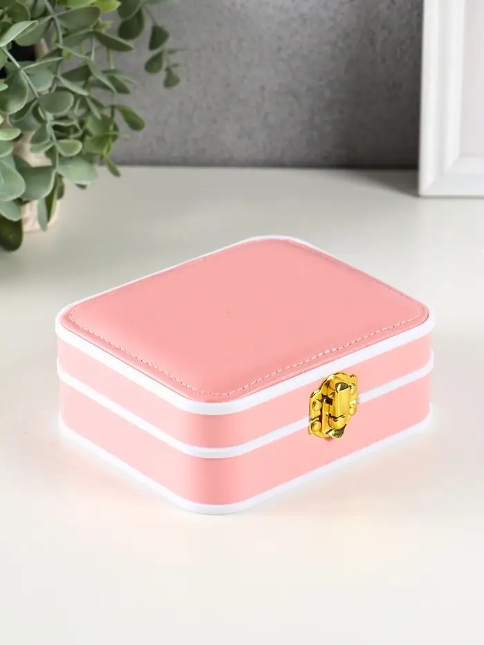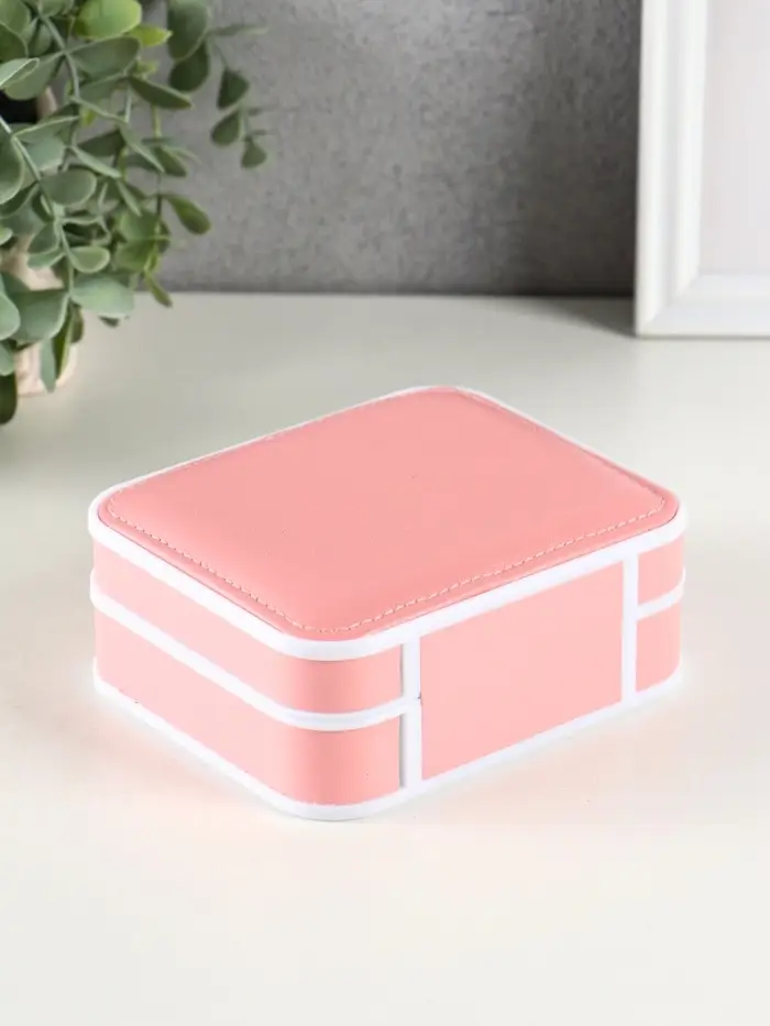 Шкатулка пластик, кожзам для украшений 6 ячеек, 10 полос, персик 13,5х11,5х5,5 см