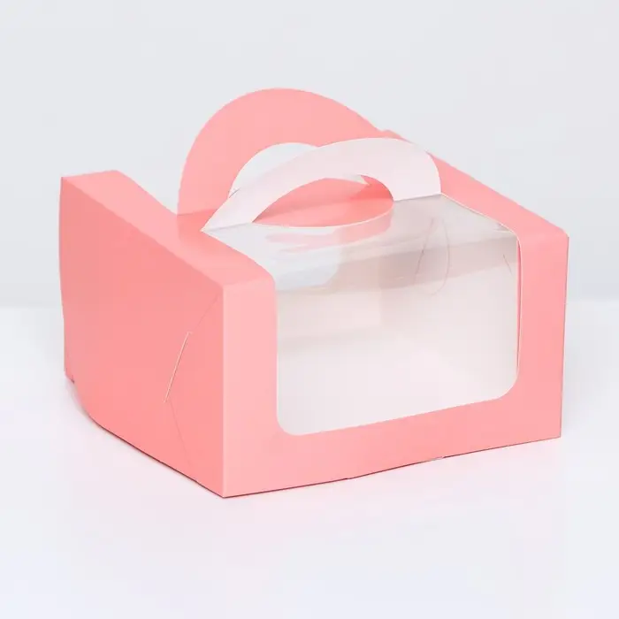 Коробка под бенто-торт с окном, розовый, 14×14×8 см